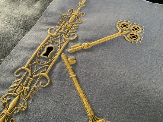 白糸刺繍の中でも、ちょっと魔法のような存在――それがドロンワーク! 多くの白糸刺繍の基本となる技法です。 名前だけ聞くと少し硬派ですが、やることはとてもシンプル。 布の織り糸を数本切って引き抜き、残った織り糸をかがったり糸を編むように刺繍を進め、透かし...