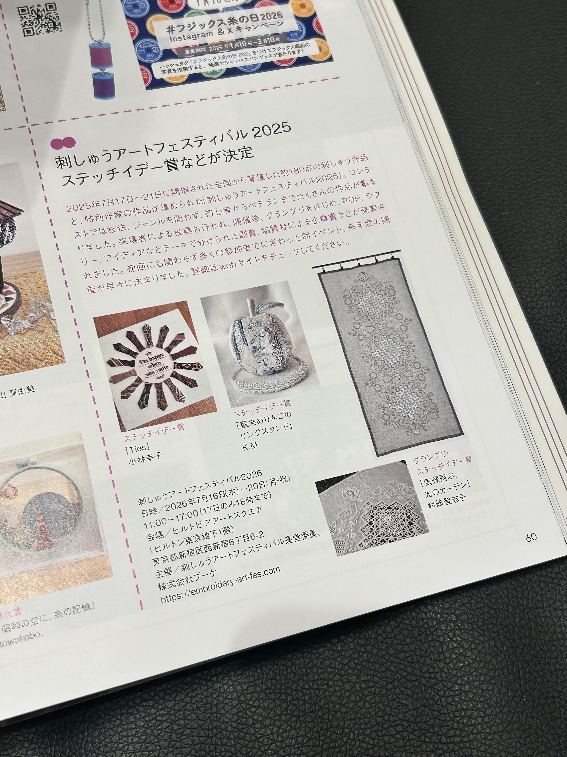 この度、日本ヴォーグ社さんのご厚意で、弊社主催の「刺繍アートフェスティバル」関連の記事を掲載していただきました。