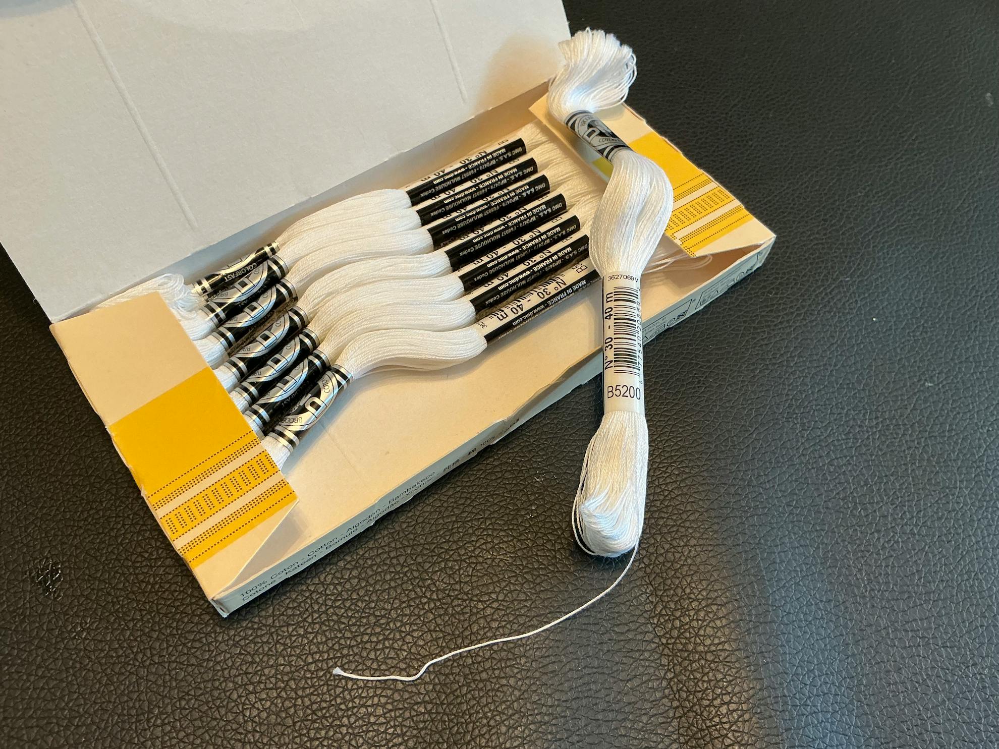 いわゆる普通の25番刺繍糸のような柔らかい糸ではなく、1本で刺せる糸を使用するのが基本です。