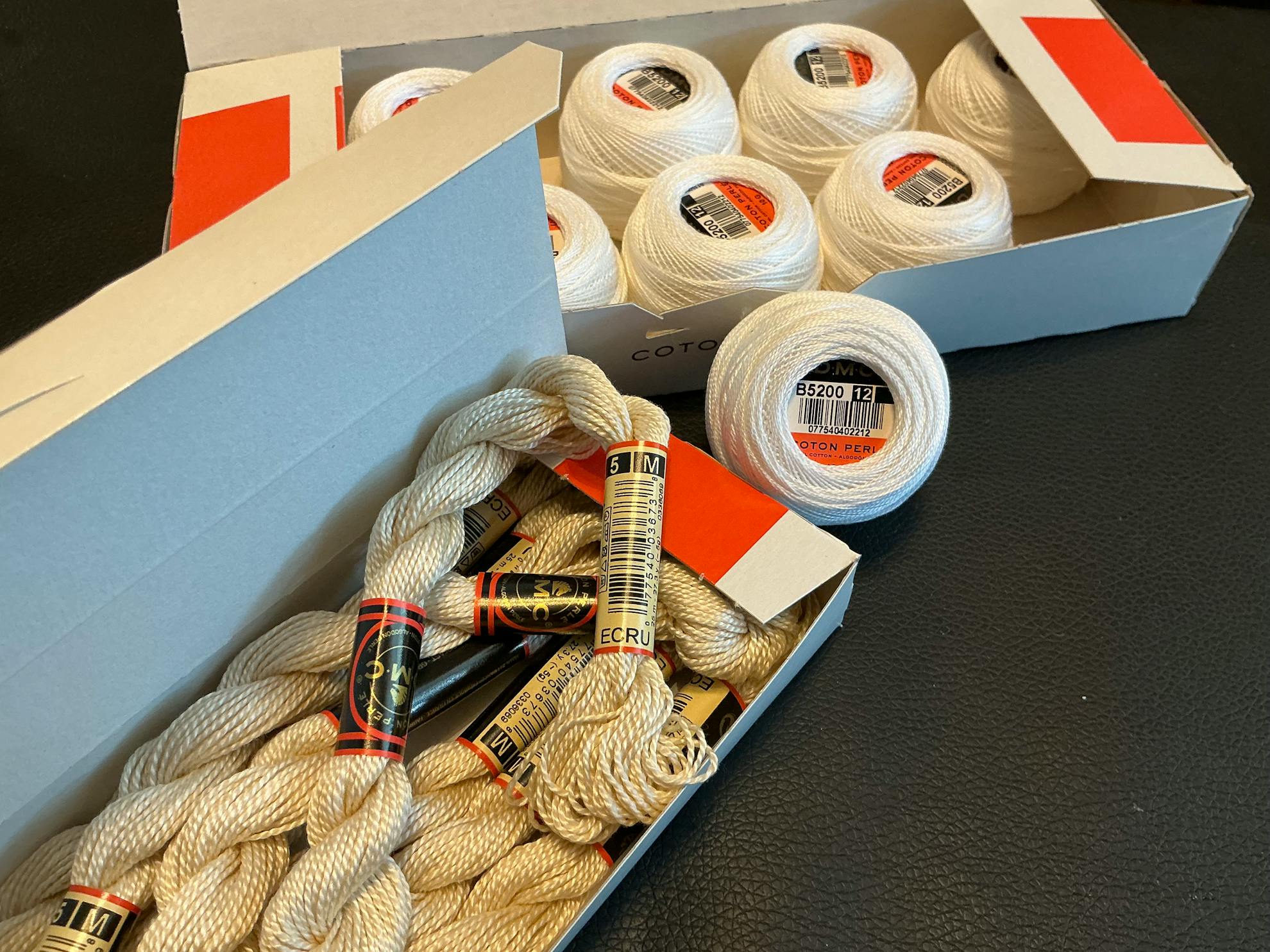 3番、5番、8番、12番の太さがあり、数字が小さいほど糸は太くなります。カセまたは玉巻きがあります。