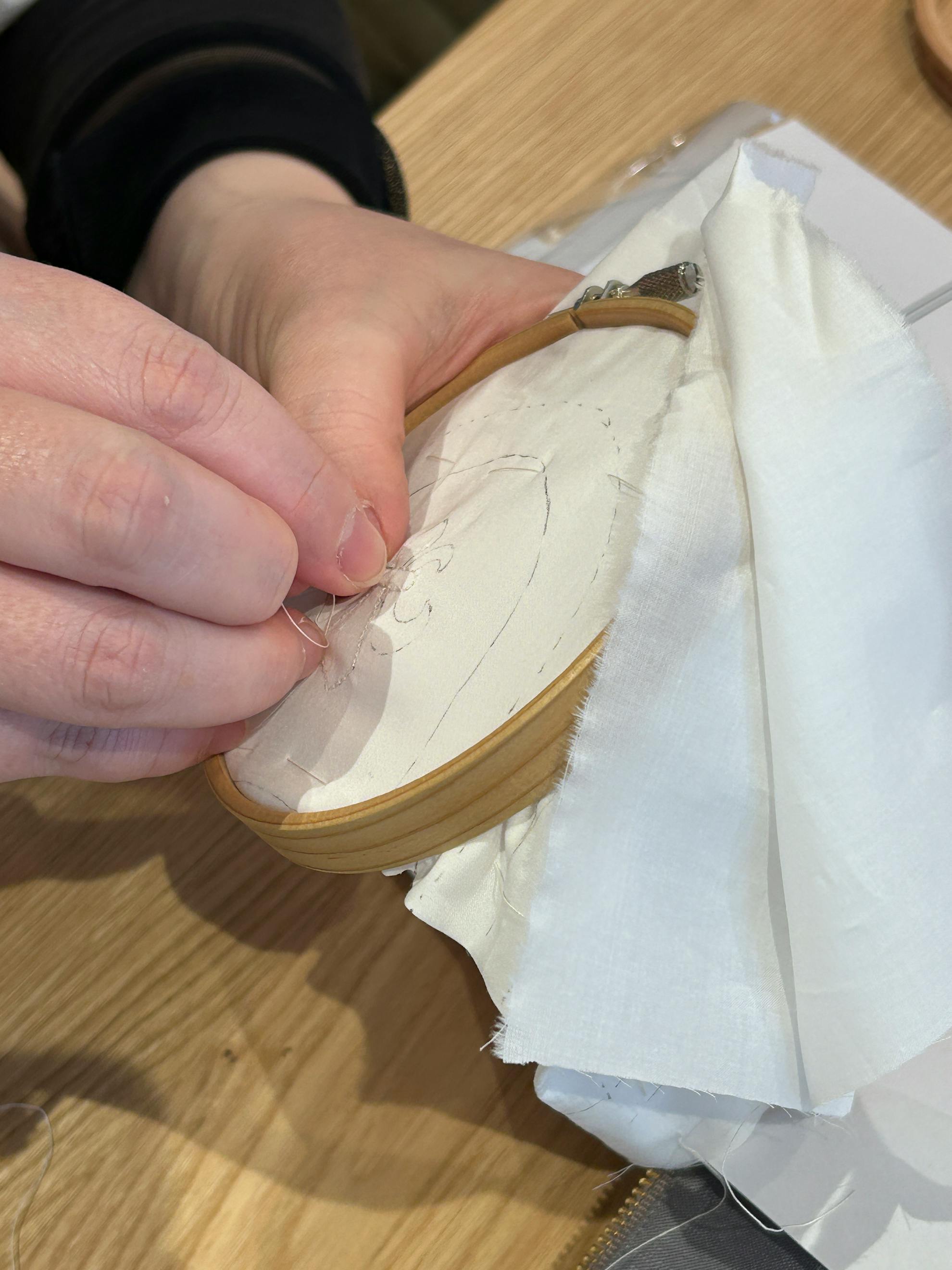 初めのうちは細かい針目に苦戦していましたが、10分もすると目や手も慣れ、ものすごい集中力でチクチク針を進めていました