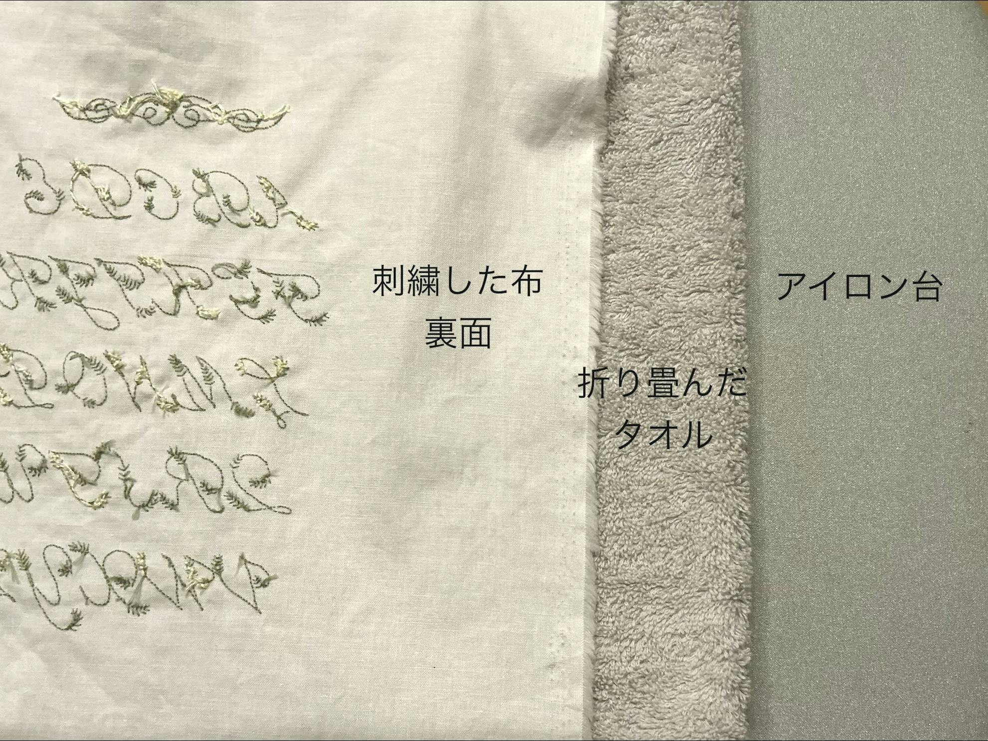 シワがあまり無ければそのまま次の工程に進みますが、シワがひどい場合は布地を整えながらアイロンをかけましょう